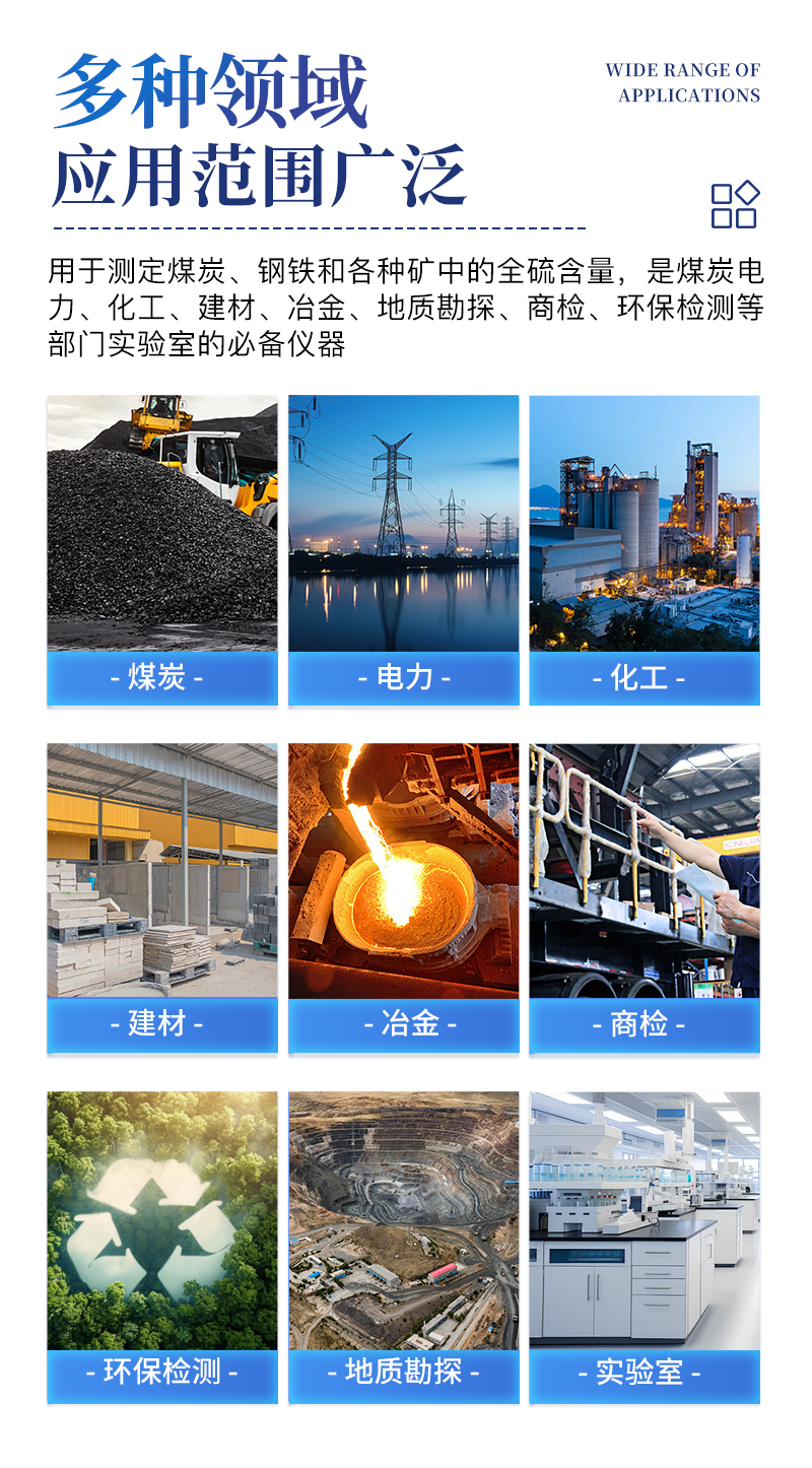 本公司生產(chǎn)的系列微機全自動定硫儀,主要用于測定煤炭、鋼鐵和各種礦中的全硫含量,是煤炭、電力、化工、建材、冶金、地質(zhì)勘探、商檢、環(huán)保檢測等部門實驗室的優(yōu)選必備儀器。