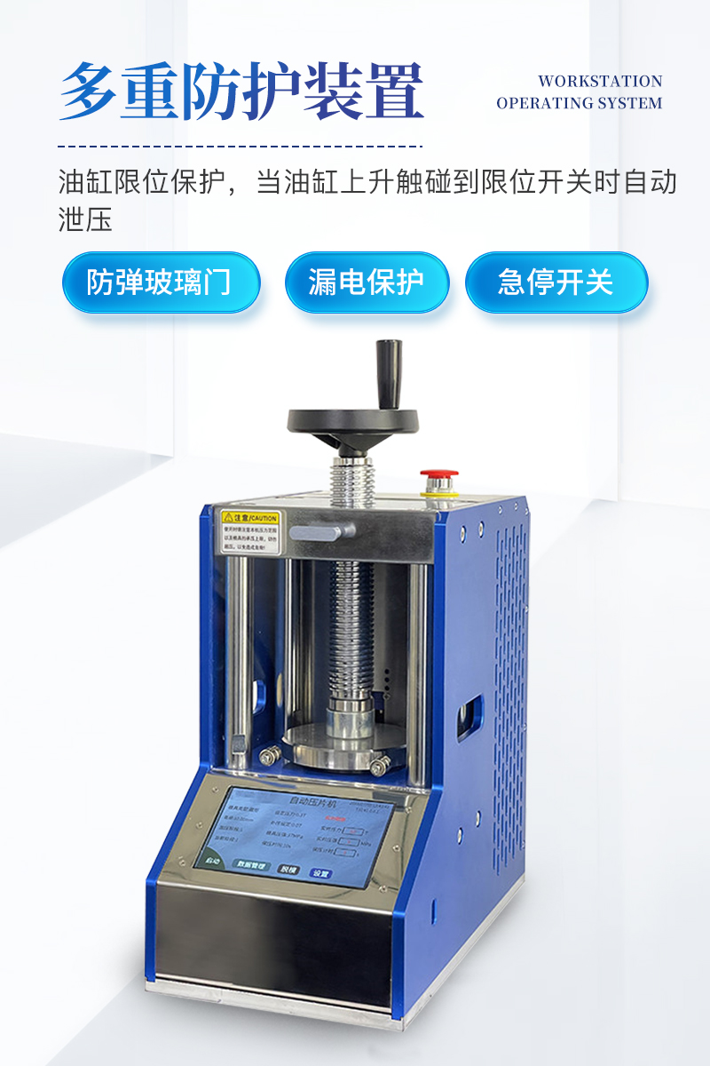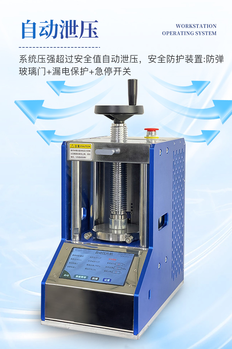 自動粉末壓片機該機配置7寸觸摸液晶屏,程序控制實現了精準控壓,滿足了客戶多段加壓的需求,另外還增設了很多安全配置,適合**實驗室使用。