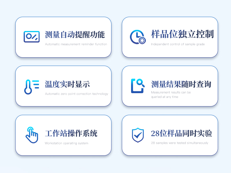 ★樣品位可獨(dú)立控制:每個(gè)樣品位獨(dú)立控制,*多實(shí)現(xiàn)28位樣品同時(shí)實(shí)驗(yàn);每次可根據(jù)情況確定樣品數(shù)量,可對本批次樣品分組或備注。并可隨時(shí)添加樣品,添加樣品后,不影響原樣品的測定時(shí)間。